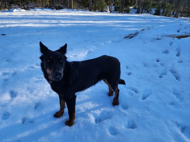 Maze enjoys hiking with us and she loves to train. She is always willing to work.